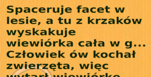 Dowcip: Spaceruje facet w lesie, a tu z krzaków wyskakuje wiewiórka
